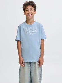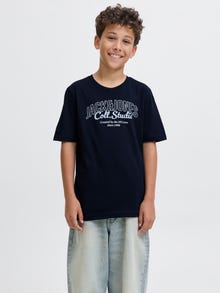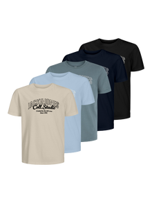Det bliver ikke mere enkelt end en T-shirt. Du kan bruge den sammen med alt fra din garderobe. Bomuld er en naturfiber, der er kendt for sine bløde og åndbare egenskaber. Oplev Jack og Jones Juniors cool verden, hvor moden lever og stråler af ungdommelig energi og betagende charme. Vores kollektioner er en blanding af friske, trendy og cool designs, der passer perfekt til drenge, i alderen 3-16 år. Se vores komfortable stilarter af høj kvalitet, der fremhæver drengemoden. Fra cool pasformer til moderne flair, omdefinerer Jack and Jones Junior-moden for 3-16 årige og omfavner ungdommens ånd i hvert outfit.. - Produkttype : T-shirt - Hals : O-hals - Ærme : Korte ærmer - Kropstype : Junior - Pasform : Regular fit