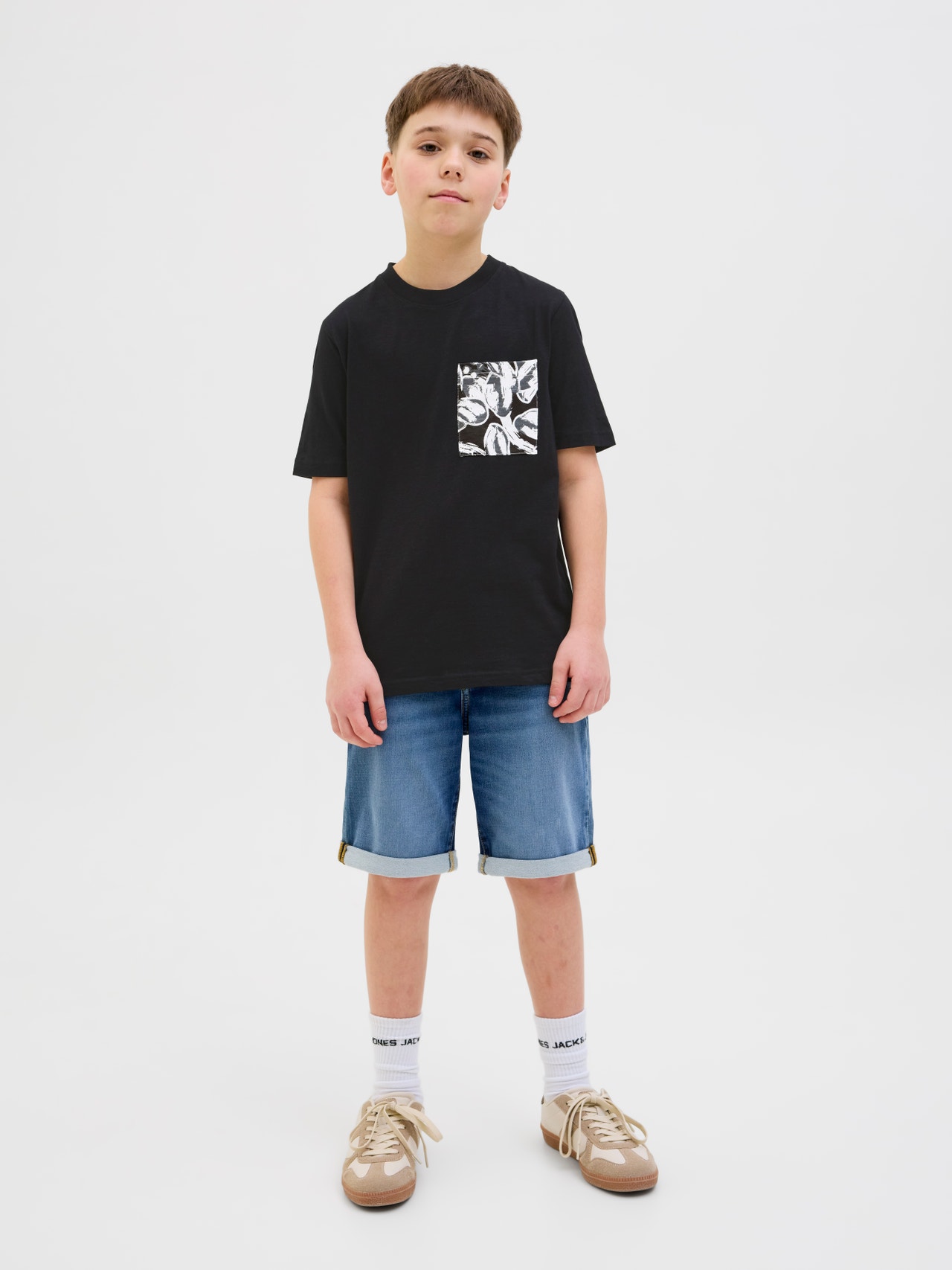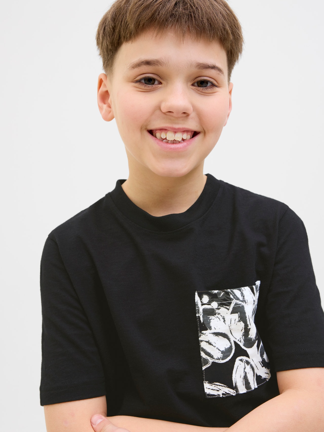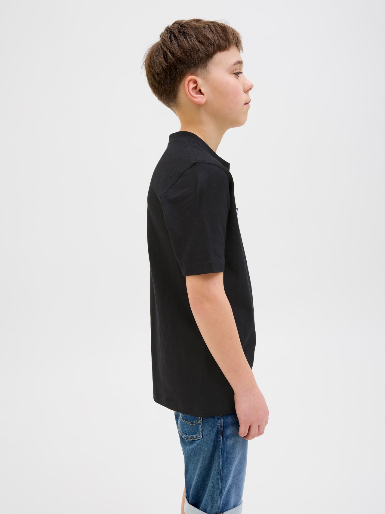 It does not get any simpler than a T-shirt. You will be able to wear it with anything from your wardrobe. Combed jersey is stretchy and has a soft feel, perfect for everyday wear. Discover the cool world of Jack and Jones Junior, where fashion comes alive with a burst of youthful energy and vibrant charm. Our collections are a blend of fresh, trendy, and cool designs tailored to fit boys aged 3-16. Immerse yourself in high-quality, comfortable styles that highlight boys’ fashion. From cool fits to contemporary flair, Jack and Jones Junior redefines fashion for ages 3-16 and embraces the spirit of adulthood into every outfit. - Product Type : T-shirt - Neck : Crew neck - Sleeve : Short sleeves - Print : Rubber print for a soft feel - Body Type : Junior - Fit : Regular Fit