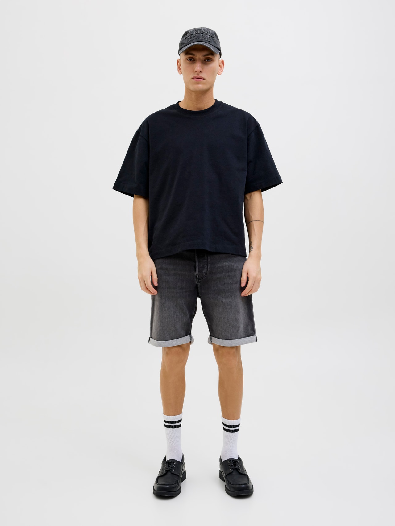 Denim is a durable twill fabric characterised by a dyed warp yarn and weft that are woven together. - Product Type : Regular fit shorts - Closing : Zip fly fastening - Pockets : Back pockets, Coin pocket, Front pockets - Waist : Mid rise - Wash/Finish : Stonewash for a faded, worn look - Fit : Regular fit with a mid rise, regular thigh, and regular leg opening