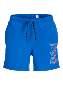 Get ready for the beach in these comfortable swim shorts made with a blend of recycled fibres. Woven fabric is a strong and durable material that does not stretch like knitted fabrics. Discover the cool world of Jack and Jones Junior, where fashion comes alive with a burst of youthful energy and vibrant charm. Our collections are a blend of fresh, trendy, and cool designs tailored to fit boys aged 3-16. Immerse yourself in high-quality, comfortable styles that highlight boys’ fashion. From cool fits to contemporary flair, Jack and Jones Junior redefines fashion for ages 3-16 and embraces the spirit of adulthood into every outfit. - Product Type : Swim shorts - Pockets : Back pocket, Front pockets - Waist : Mid rise - Extra details : Drawstring at waist, Elasticated waistband - Fit : Regular Fit