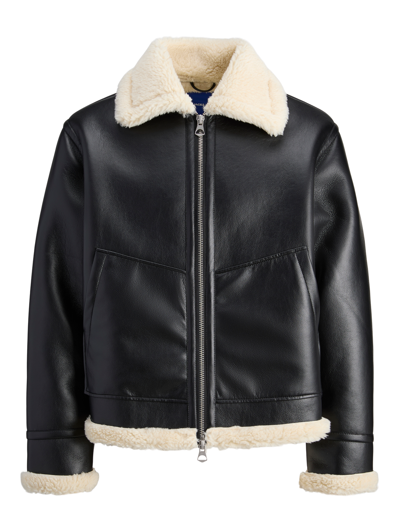 Keep it casual with a quality jacket for everyday wear. Polyurethane is a durable, synthetic material. - Product Type : Aviator jacket - Neck : Spread collar - Sleeve : Long sleeves - Closing : 2-way zip fastening - Lining : Teddy lining for warmth and a soft feel