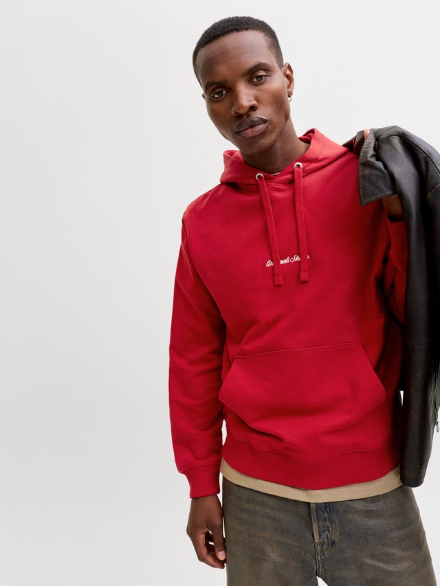 Hoodies for men are everywhere and is a wardrobe must-have. Shop from our selection, we got both basic and printed designs - so we are sure you will find something that suits you! JACK & JONES hoodies are both iconic and versatile. You can wear them all year round! A black or grey hoodie can be worn instead of a jacket or as a part of a