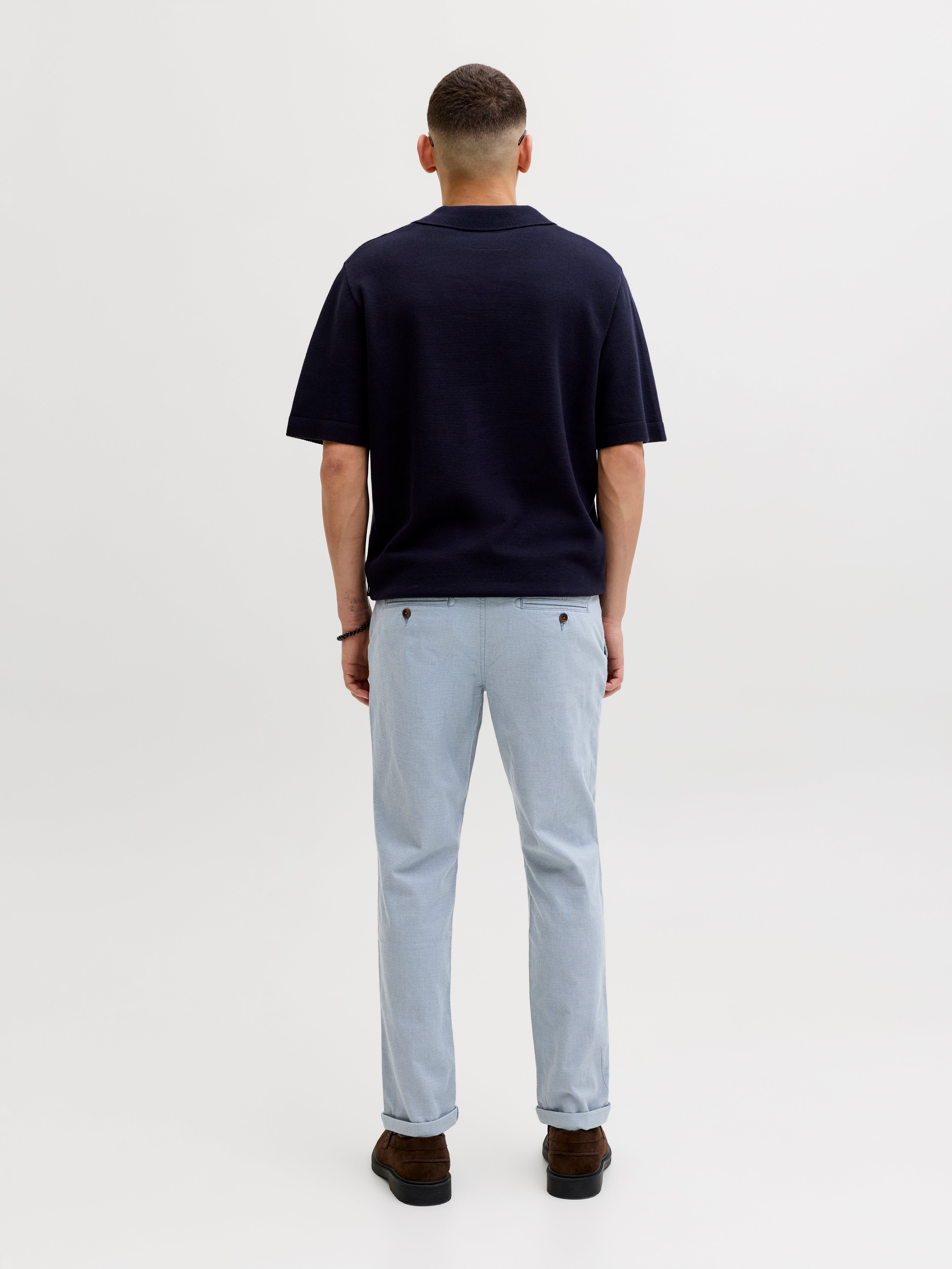 Padidinkite savo garderobą su chino kelnių pora. Šis nesenstantis kuokštas yra protinga laisvalaikio alternatyva džinsams.
