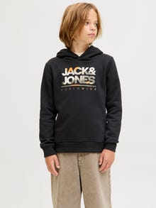Ingen garderobe er komplett uten noen pålitelige styles som sweatshirts. Børstet stoff som er mykt på innsiden. Lettbørstede stoffer kjennetegnes av at innsiden av stoffet har en litt hårete tekstur og en myk følelse. Oppdag den kule verdenen til JACK & JONES Junior, hvor mote blir virkelighet med et utbrudd av ungdommelig energi og livlig sjarm. Våre kolleksjoner er en blanding av freshe, trendy og kule design skreddersydd for gutter i alderen 3–16 år. Fordyp deg i komfortable styles av høy kvalitet som fremhever guttemote. Fra kule passformer til moderne stil, JACK & JONES Junior redefinerer mote for alderen 3–16 og omfavner voksenånden i hvert antrekk.. - Produkttype : Hettegenser - Hals : Hettegenser - Erme : Lange ermer - Ermer : Innlagte ermer - Mønster : Gummitrykk for en myk følelse - Passform : Standard Fit