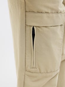 Originalmente concebidas para os militares britânicos, as calças cargo têm vários bolsos de perna para uma maior praticidade. Perfeito tanto para um look casual como para uma roupa com estilo, tudo depende da forma como lhe dá estilo. O tecido é um material forte e durável que não se estica como os tecidos de malha. Descubra o mundo muito porreiro da Jack and Jones Junior, onde a moda ganha vida com uma explosão de energia juvenil e um encanto vibrante. As nossas coleções são uma mistura de designs frescos, modernos e muito porreiros, adaptados a rapazes dos 3 aos 16 anos. Mergulhe em estilos confortáveis e de alta qualidade que realçam a moda masculina. Desde os modelos mais modernos até ao estilo contemporâneo, a Jack and Jones Junior redefine a moda para as idades entre os 3 e os 16 anos e abraça o espírito da idade adulta em cada roupa.. - Tipo de produto : Calças de corte relaxado - Bolsos : Bolsos frontais, Bolsos laterais - Cintura/cós : Cós Médio - Detalhes da perna : Bainhas desdobráveis - Detalhes extra : Cintura elástica - Tipo de corpo : Junior - Ajuste : Corte relaxado com cintura média e coxa, joelho e bainha largos - Tipo de acessório : Cordão não fixo - Comprimento do acessório : 10 - Composição do anexo : Algodão