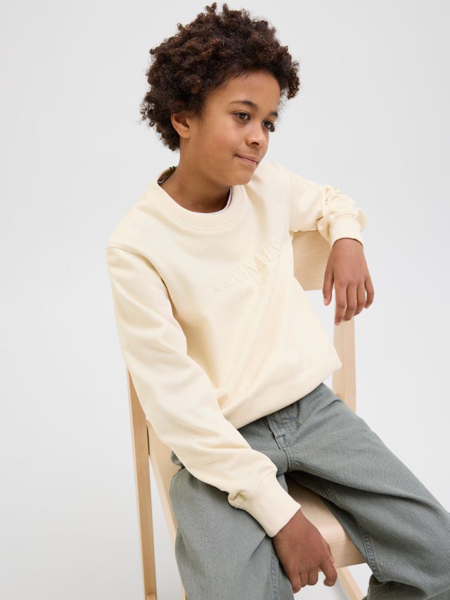 Men med eller utan jacka kan du skapa coola looks med våra sweatshirts för pojkar. Det kan också bli så att du önskar att det ska bli sämre väder, så att T-shirts och västtoppar äntligen kan lämna plats åt de älskade tröjorna som du hittar i vår onlinebutik i olika färger som blått, gult, grönt, svart och även rosa. Randiga och färgblockerade modeller är också väldigt trendiga och bör inte saknas i garderoben. Och så har vi såklart även coola logotyptröjor för alla som vill vara en del av vårt JACK & JONES-brödraskap. Så det blir aldrig tråkigt, eftersom du kan styla många trendiga looks. För en sportig outfit kan du kombinera din tröja med coola joggers eller trendiga cargobyxor. Men våra tröjor i juniorstorlek är också alltid ett bra val till jeans eller chinos.