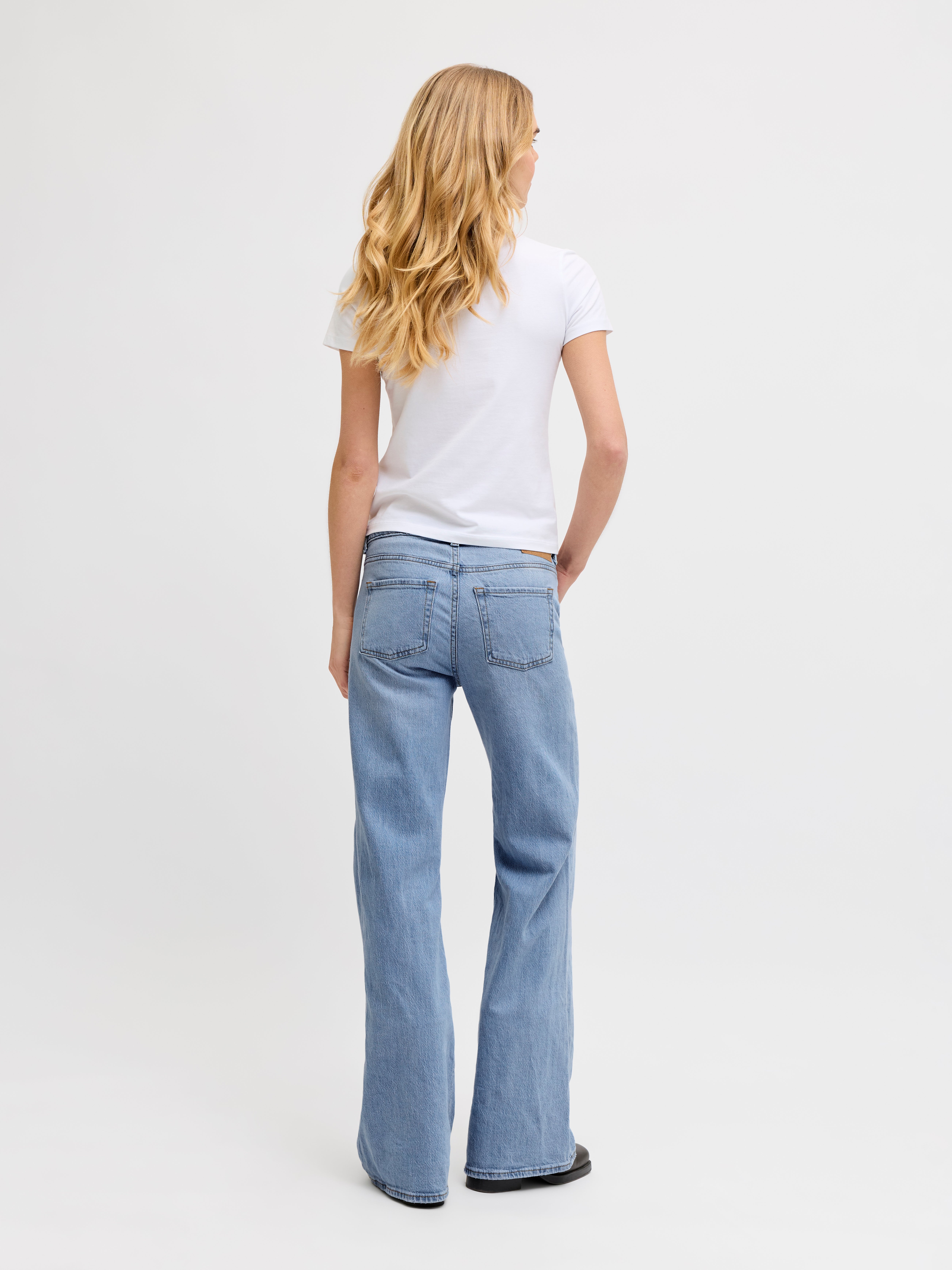 - Passform : Medelhög midja, normal passform, utsvängda ben
