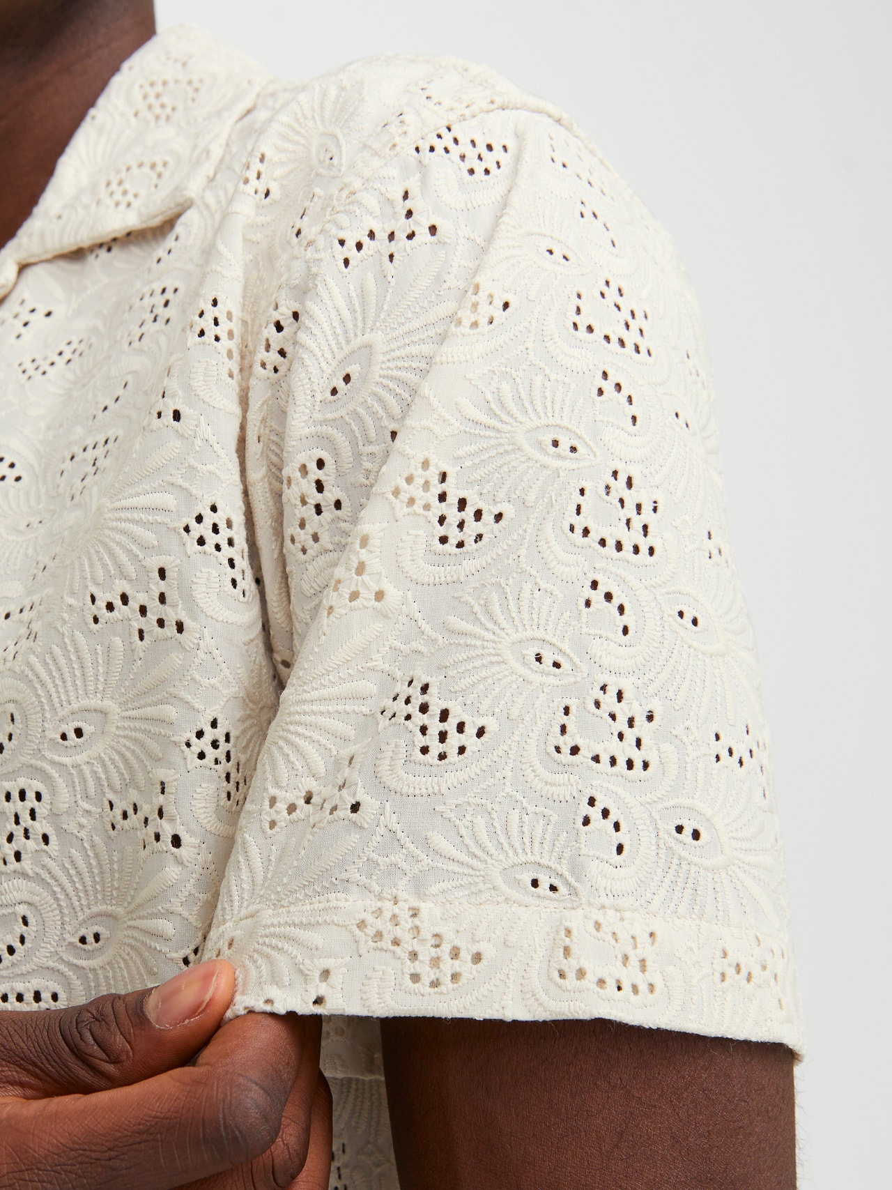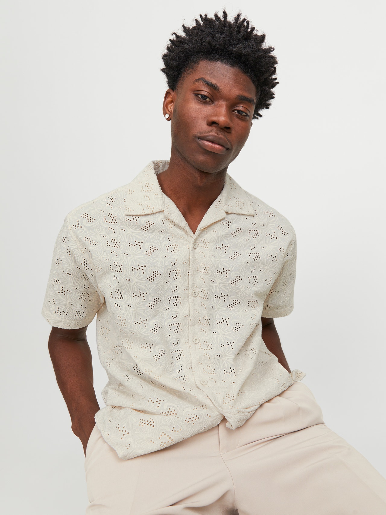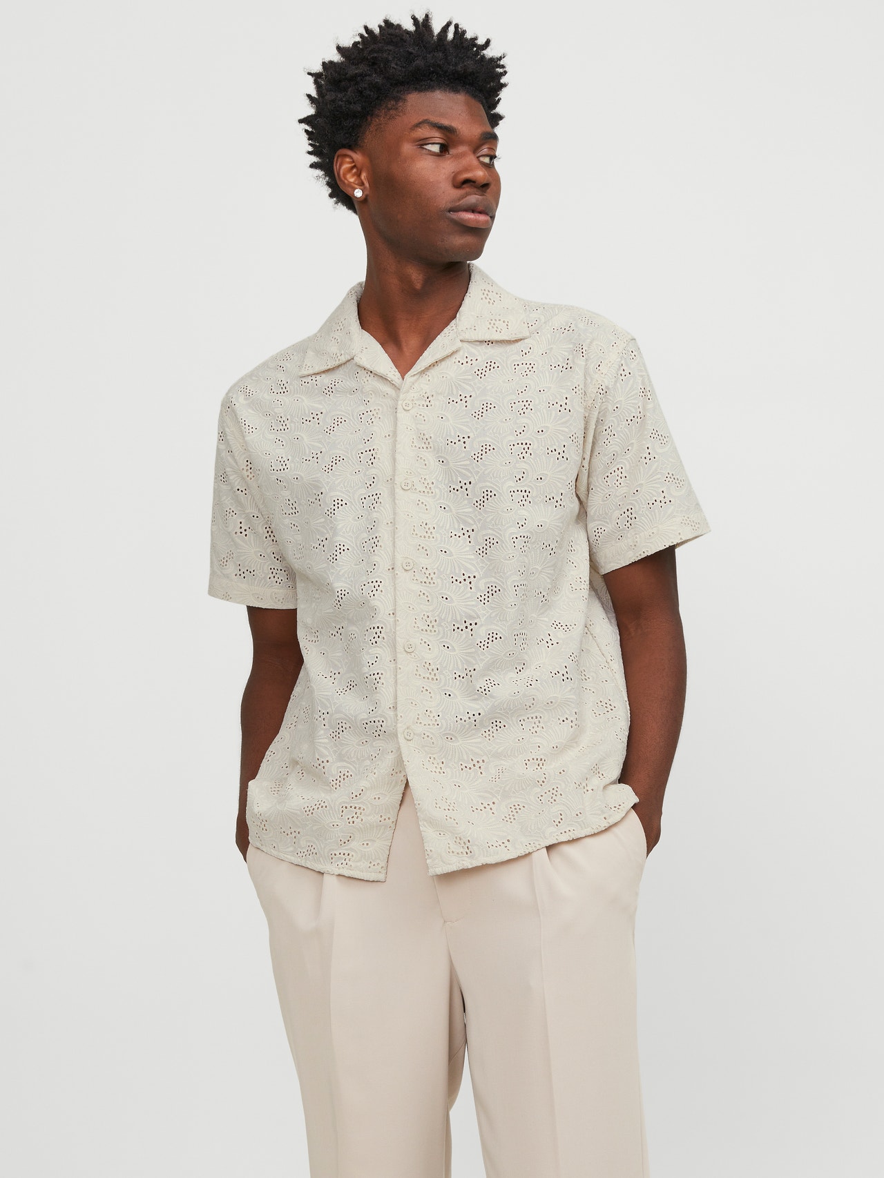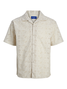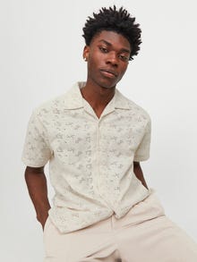Light and airy shirt for a stylish summer outfit. Jacquard is a pattern woven directly into the fabric, rather than embroidered or printed. It is durable and strong, with a structured and wrinkle-resistant feel. - Product Type : Shirt - Neck : Resort collar - Sleeve : Short sleeves - Closing : Button fastening - Fit : Relaxed Fit