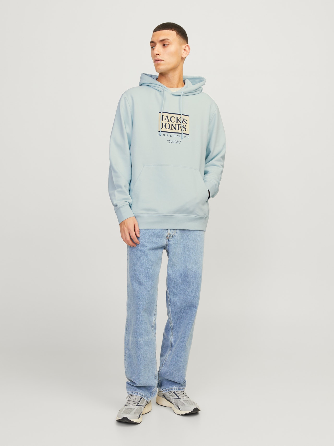 No wardrobe is complete without a few dependable staples like sweats. Unbrushed sweat fabric has a smooth surface and loops on the inside for a comfortable feel. - Product Type : Hoodie - Neck : Hoodie - Sleeve : Long sleeves - Sleeves : Set in sleeves - Pockets : Kangaroo pocket - Lining : Body fabric inside hood - Print : Rubber print for a soft feel - Fit : Relaxed Fit