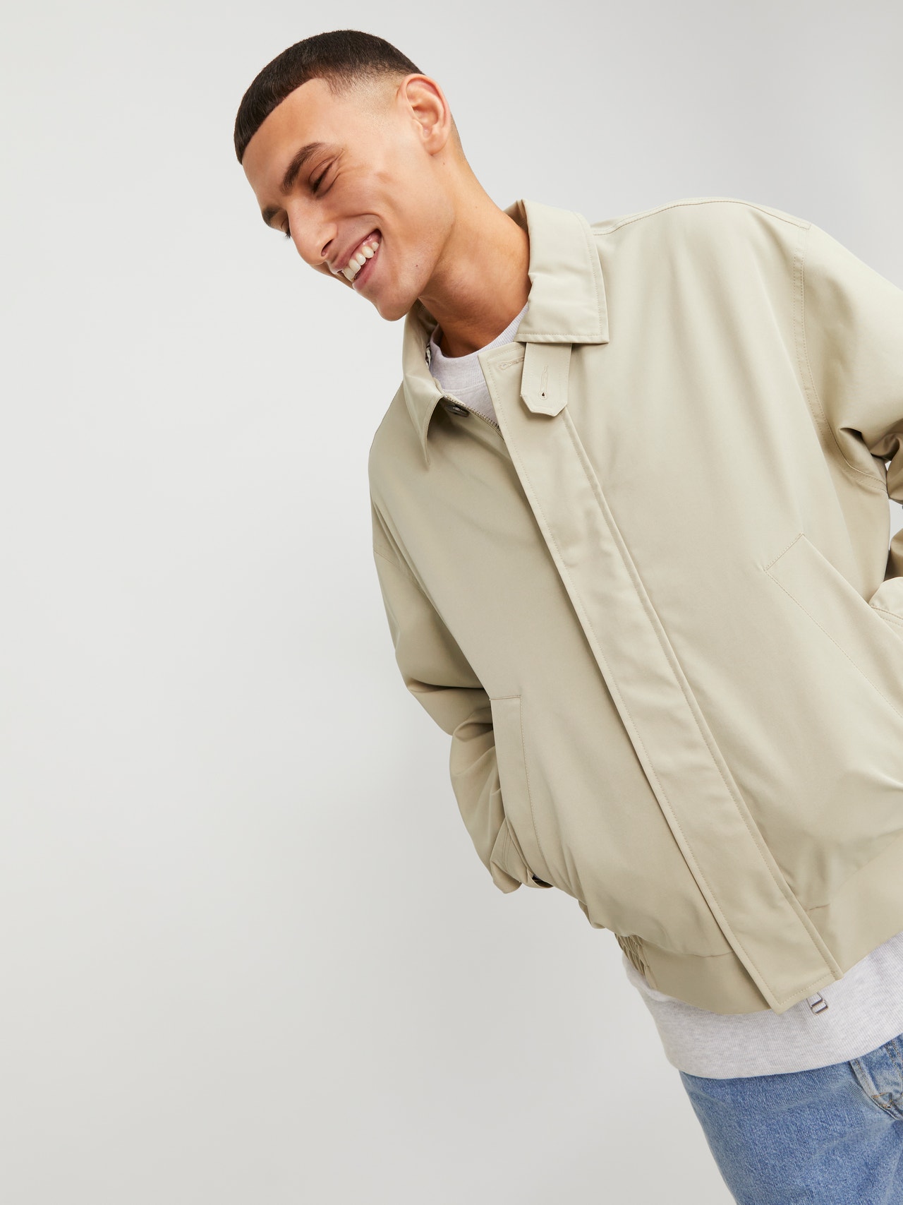Prepare for a new season with this lightweight jacket perfect for a bright spring day. Lightweight fabric is thin and light for a breathable and comfortable feel. - Product Type : Bomber jacket - Neck : Spread collar - Sleeve : Long sleeves - Cuffs : Ribbed cuffs - Closing : Button fastening, Zip fastening - Pockets : Front pockets