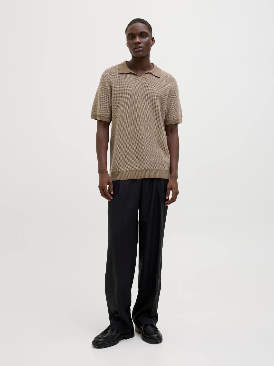 Regular Fit Split neck Dropped shoulders Knitted Polo-Shirt