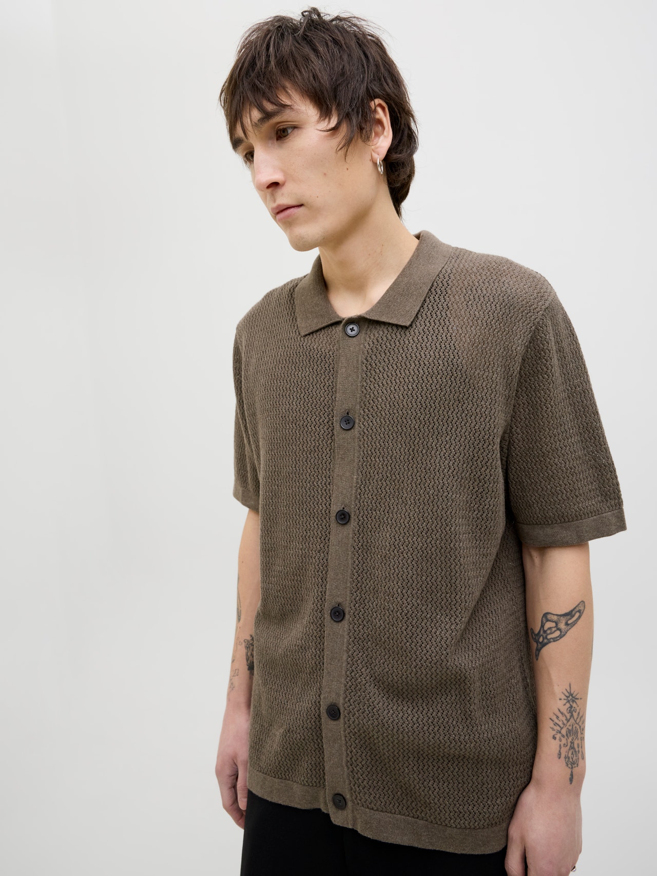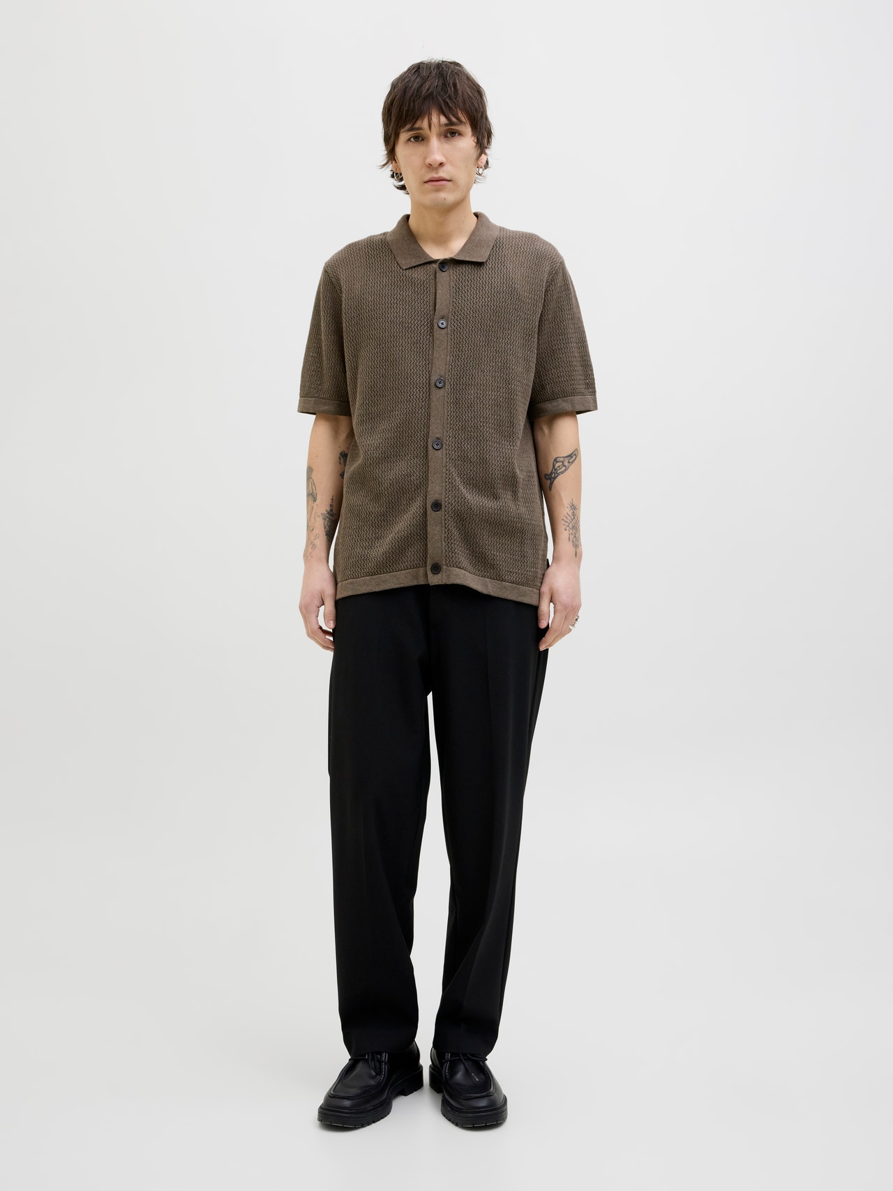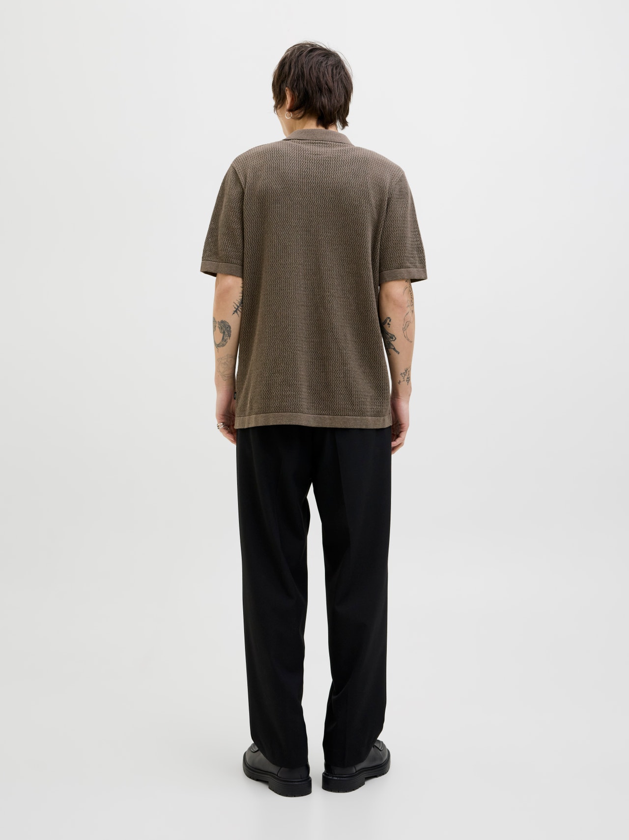 This basic knit goes with everything in your wardrobe. Flat knit is a knitted fabric with comfort and flexibility. - Product Type : Polo - Neck : Polo - Sleeve : Short sleeves - Closing : Button fastening - Fit : Relaxed Fit