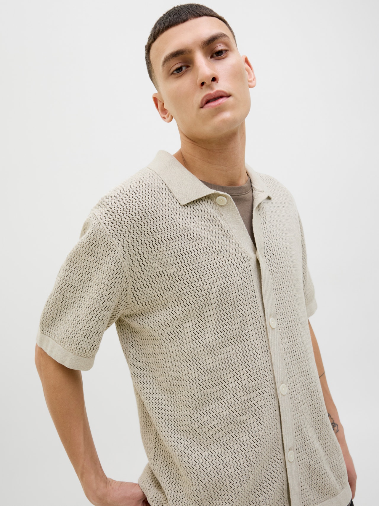 This basic knit goes with everything in your wardrobe. Flat knit is a knitted fabric with comfort and flexibility. - Product Type : Polo - Neck : Polo - Sleeve : Short sleeves - Closing : Button fastening - Fit : Relaxed Fit