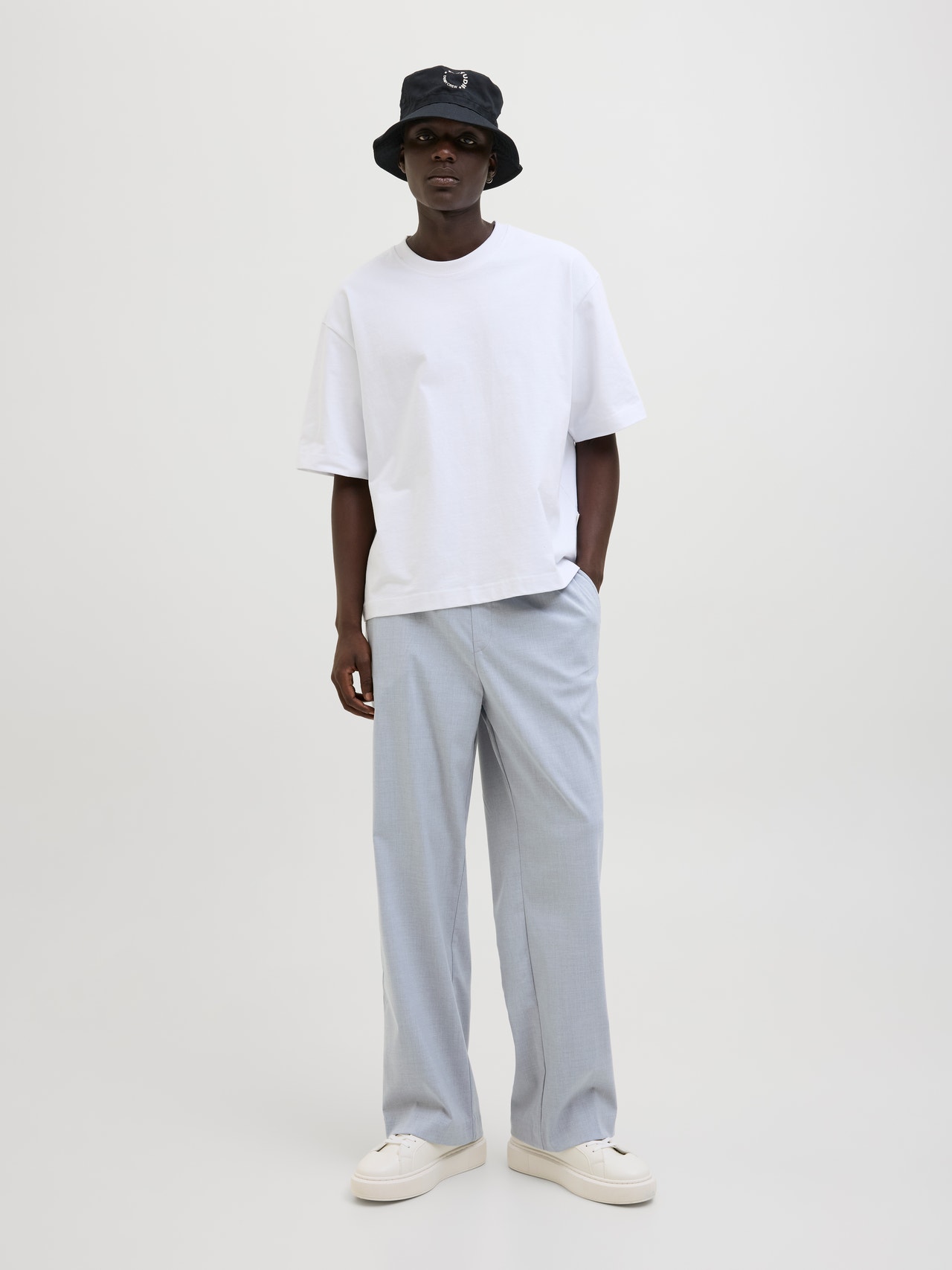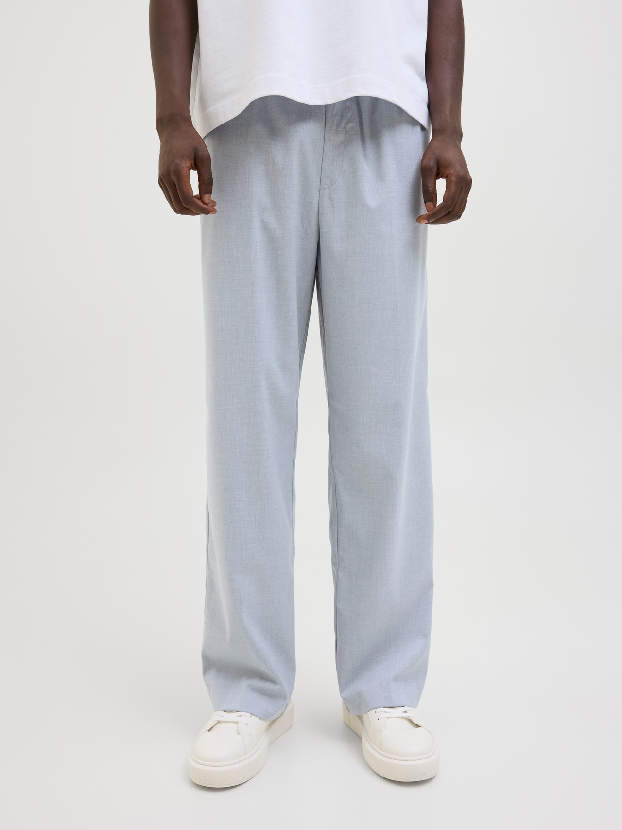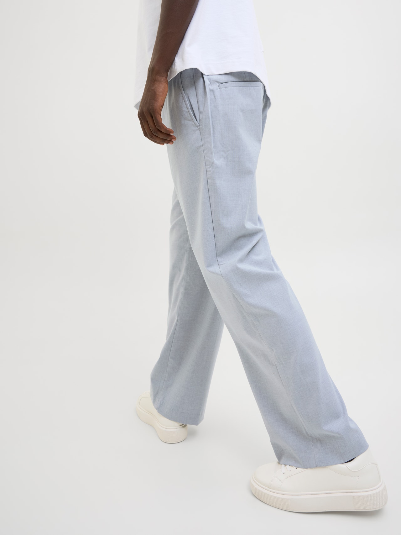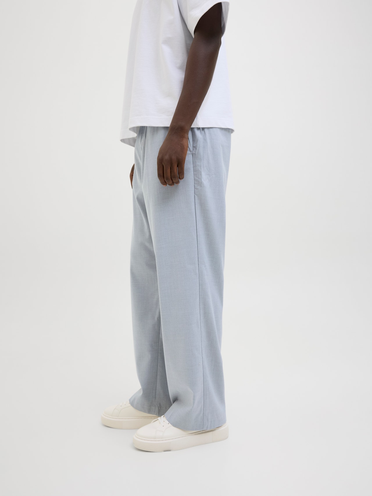 Elevate your wardrobe with a pair of chinos. This timeless staple is the smart-casual alternative to jeans. Woven fabric is a strong and durable material that does not stretch like knitted fabrics. - Product Type : Wide-leg trousers - Pockets : Back pockets, Front pockets - Waist : Mid rise - Leg details : Fold-up hems - Extra details : Elasticated waist - Fit : Wide fit with a high rise, wide thigh, knee, and leg opening