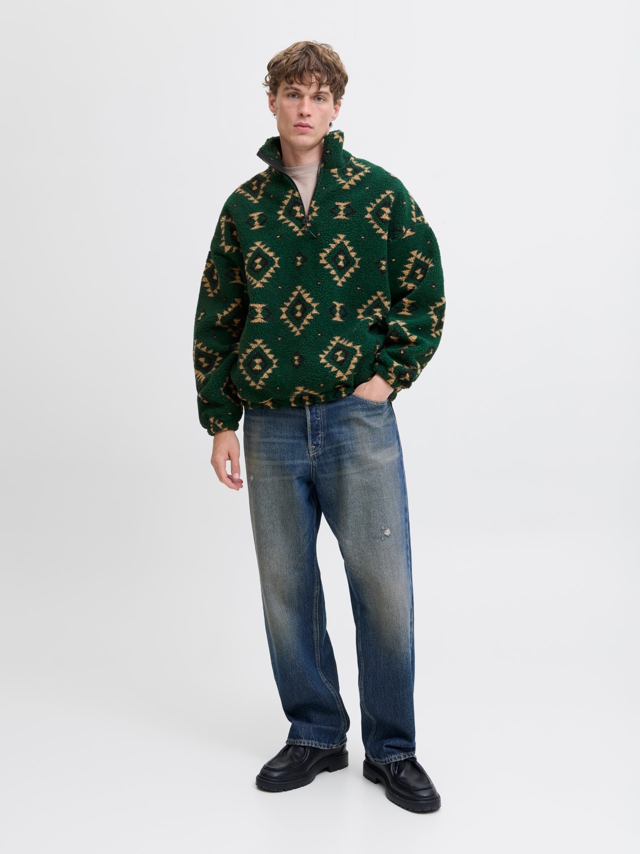 Casualwear is relaxed and suited for everyday use. Light brushed fabric with a soft finish on the inside. Brushed fabrics are defined by the inside of the fabric having a hairy texture and a soft feel. - Product Type : Sweatshirts - Neck : High neck - Sleeve : Long sleeves - Sleeves : Set in sleeves - Closing : Zip fastening - Pockets : Side pockets - Fit : Volume Fit